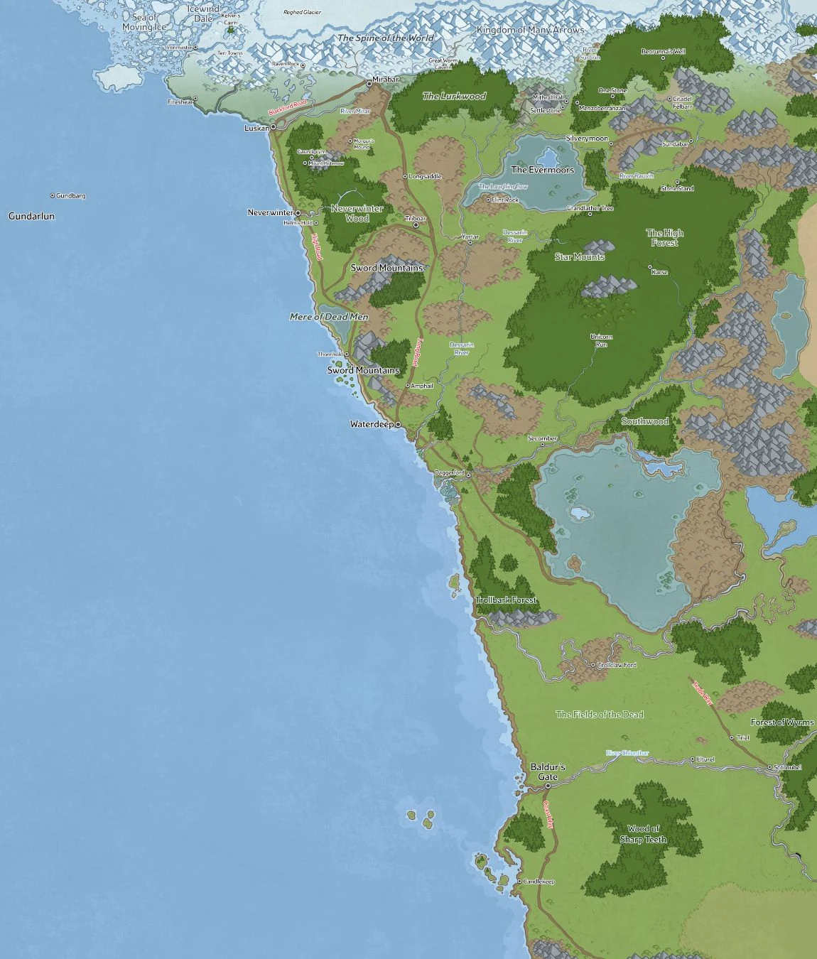 Sword Coast is one of the primary locations in Idle Champions of the Forgotten Realms. It is located on the west coast of Faerûn, one of the continents on the planet Toril[1]. A Grand Tour of the Sword Coast and Baldur's Gate: Descent into Avernus campaigns contain adventure hubs located on the Sword Coast.